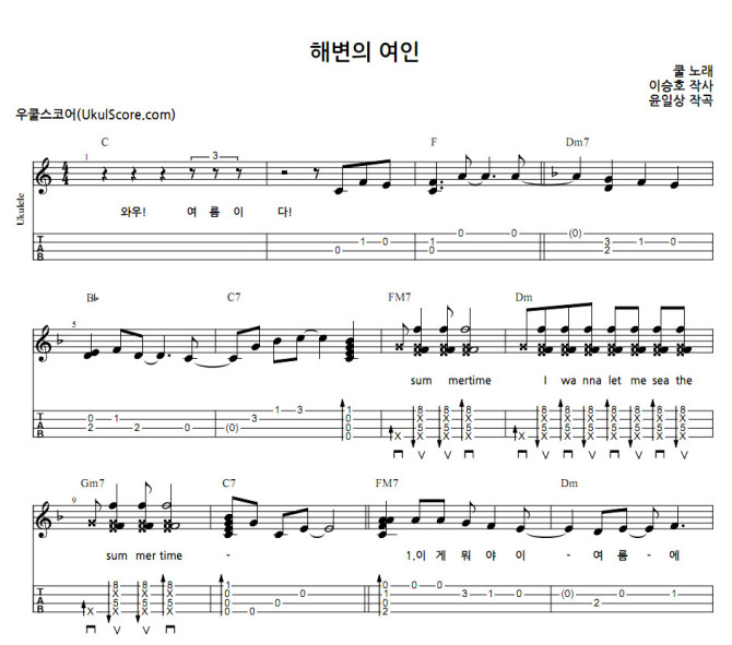 모든 스탠다드 튜닝 호환 가능한 우쿨렐레 연주 악보입니다. 초반 옥타브 주법 및 다양한 멜로디 리듬으로 인해 연습하기 적절한 난이도 입니다. 전체적인 난이도는 中입니다. 악보 피드백 & 문의 spy30933@naver.com |