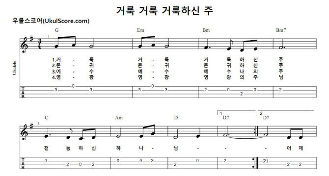 모든 튜닝 호환 가능한 우쿨렐레 멜로디 악보입니다. 단음 멜로디를 TAB로 연주하고 우쿨렐레나 다른 악기 반주와 함께 합주하실 수 있습니다. 악보 피드백 & 문의 spy30933@naver.com |