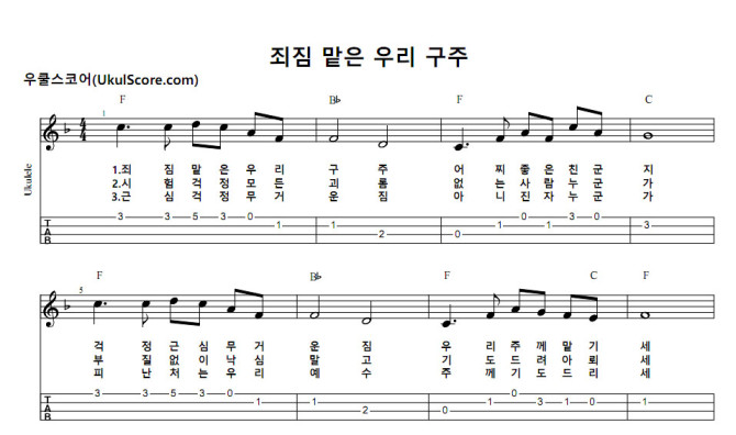 모든 튜닝 호환 가능한 우쿨렐레 멜로디 악보입니다. 단음 멜로디를 TAB로 연주하고 우쿨렐레나 다른 악기 반주와 함께 합주하실 수 있습니다. 악보 피드백 & 문의 spy30933@naver.com |