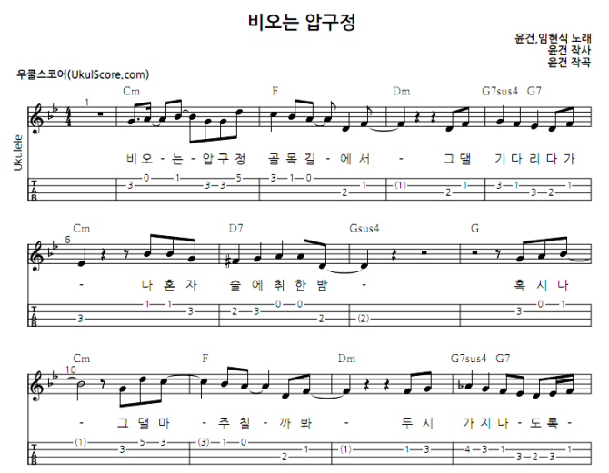 4. 우쿨스코어는 소중한 저작권을 존중합니다. 다운로드 받으신 악보는 사적으로 이용하실 수 있으며, 무단배포, 전재, 불법복제는 법으로 금지됩니다.