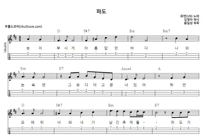 4. 우쿨스코어는 소중한 저작권을 존중합니다. 다운로드 받으신 악보는 사적으로 이용하실 수 있으며, 무단배포, 전재, 불법복제는 법으로 금지됩니다.