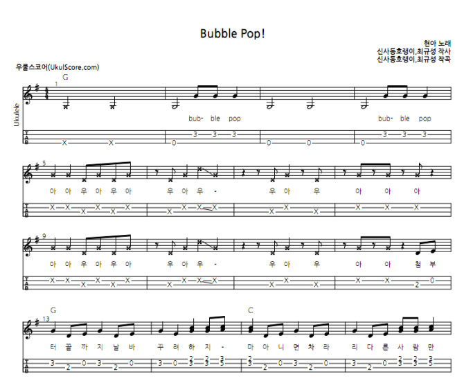 4. 우쿨스코어는 소중한 저작권을 존중합니다. 다운로드 받으신 악보는 사적으로 이용하실 수 있으며, 무단배포, 전재, 불법복제는 법으로 금지됩니다.