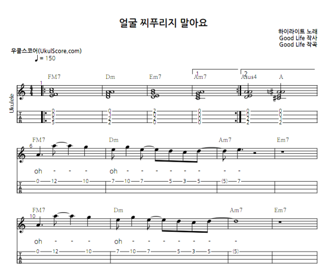 4. 우쿨스코어는 소중한 저작권을 존중합니다. 다운로드 받으신 악보는 사적으로 이용하실 수 있으며, 무단배포, 전재, 불법복제는 법으로 금지됩니다.