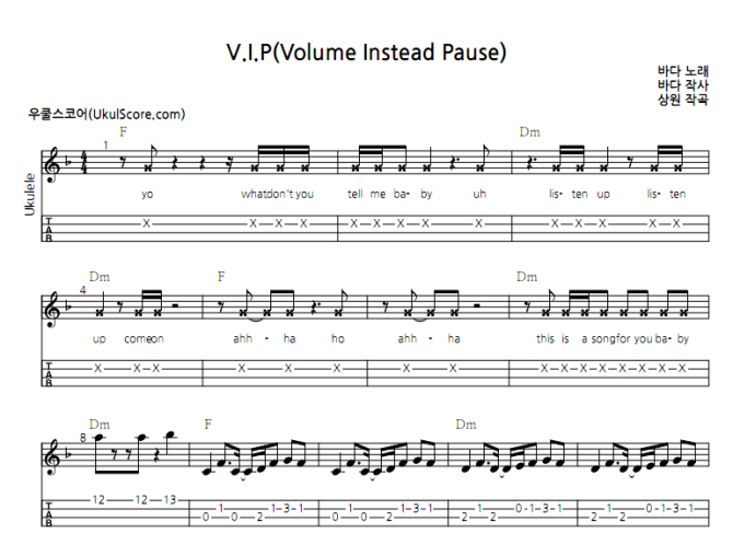 4. 우쿨스코어는 소중한 저작권을 존중합니다. 다운로드 받으신 악보는 사적으로 이용하실 수 있으며, 무단배포, 전재, 불법복제는 법으로 금지됩니다.