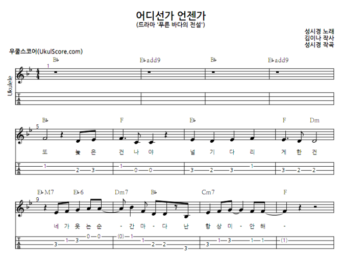 4. 우쿨스코어는 소중한 저작권을 존중합니다. 다운로드 받으신 악보는 사적으로 이용하실 수 있으며, 무단배포, 전재, 불법복제는 법으로 금지됩니다.