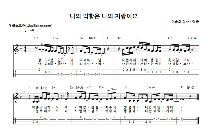 모든 튜닝 호환 가능한 우쿨렐레 멜로디 악보입니다 악보 피드백 & 문의 spy30933@naver.com |