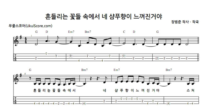 흔들리는 꽃들 속에서 네 샴푸향이 느껴진거야 (드라마 '멜로가 체질' OST) G key 입니당 :) |