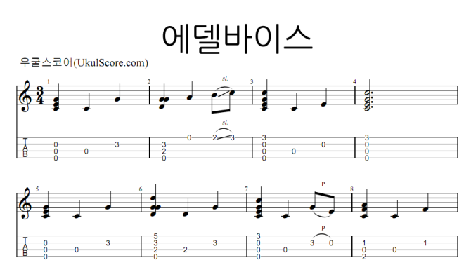 4. 우쿨스코어는 소중한 저작권을 존중합니다. 다운로드 받으신 악보는 사적으로 이용하실 수 있으며, 무단배포, 전재, 불법복제는 법으로 금지됩니다.