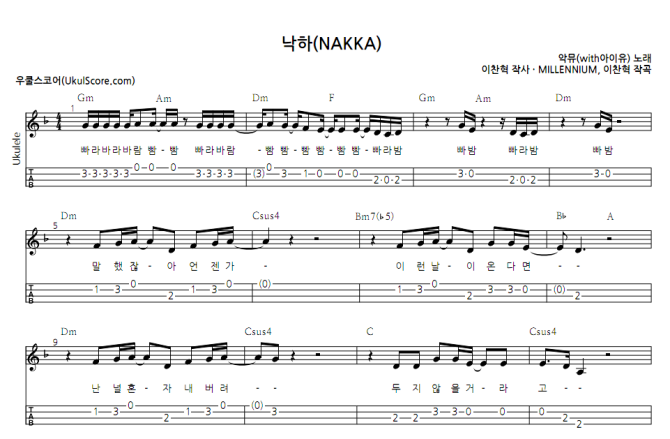4. 우쿨스코어는 소중한 저작권을 존중합니다. 다운로드 받으신 악보는 사적으로 이용하실 수 있으며, 무단배포, 전재, 불법복제는 법으로 금지됩니다.