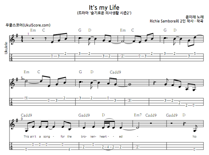 4. 우쿨스코어는 소중한 저작권을 존중합니다. 다운로드 받으신 악보는 사적으로 이용하실 수 있으며, 무단배포, 전재, 불법복제는 법으로 금지됩니다.