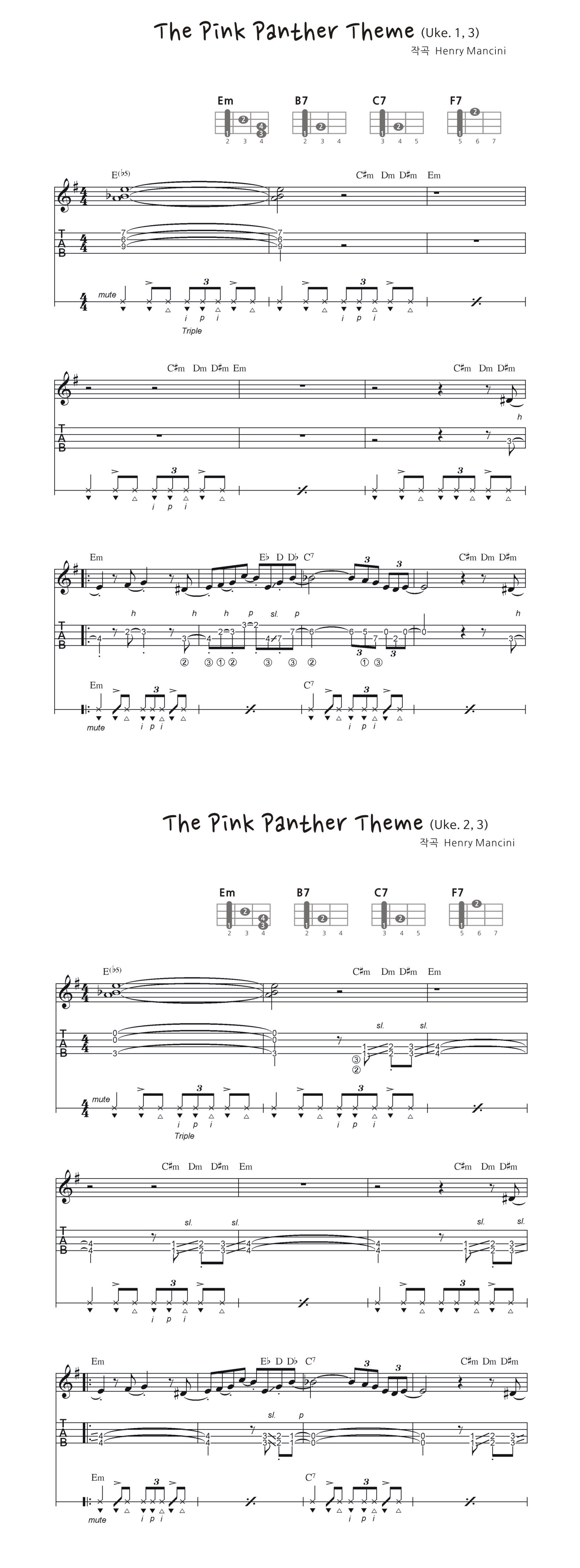 Uke. 1. -  멜로디라인    Uke. 2. -  반주 (베이스)      Uke. 3. -  리듬반주