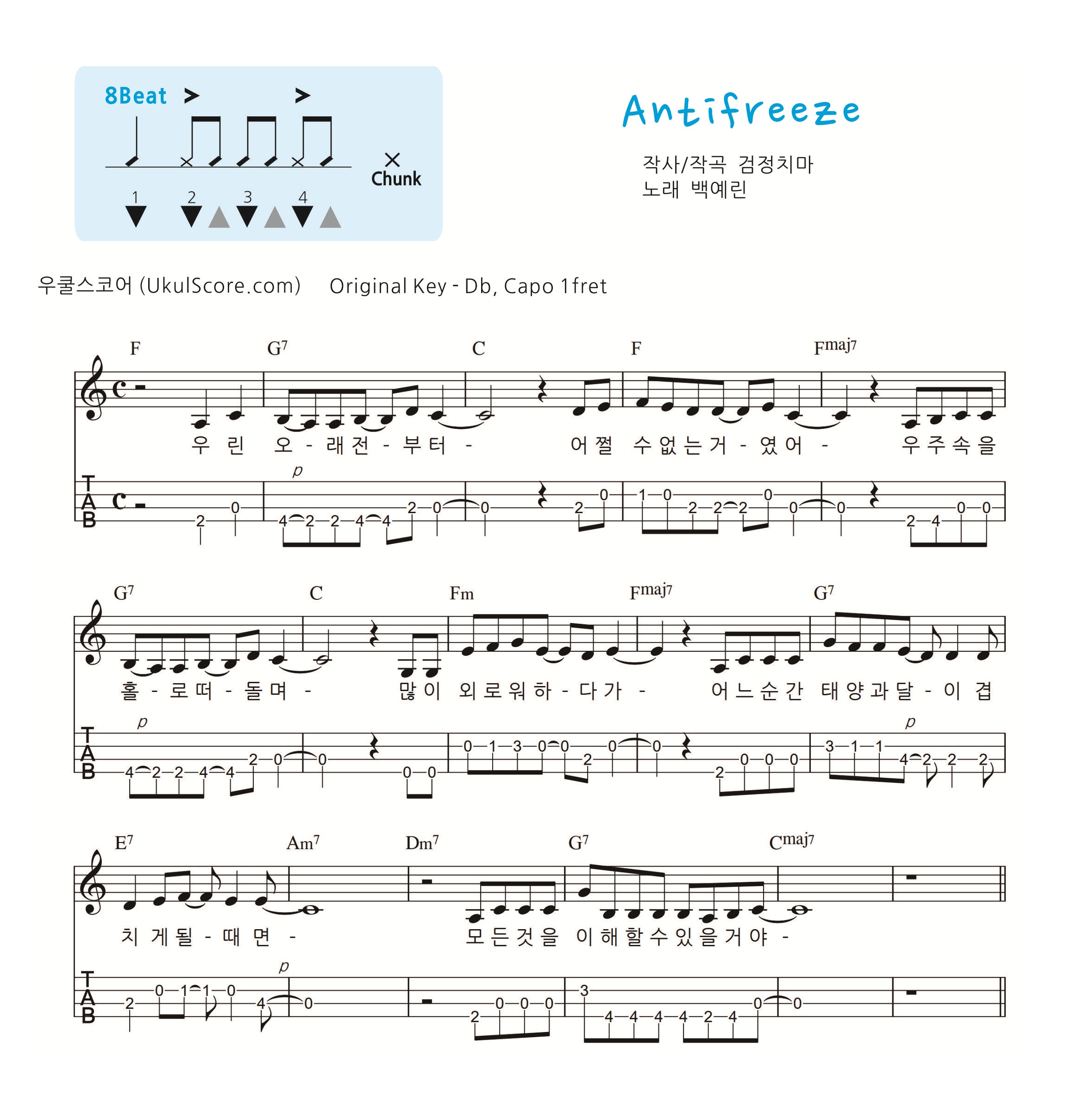 반주 악보를 보시려면 여기를 클릭하세요  Antifreeze (가요교재 949) 반주 > 악보 | 우쿨스코어