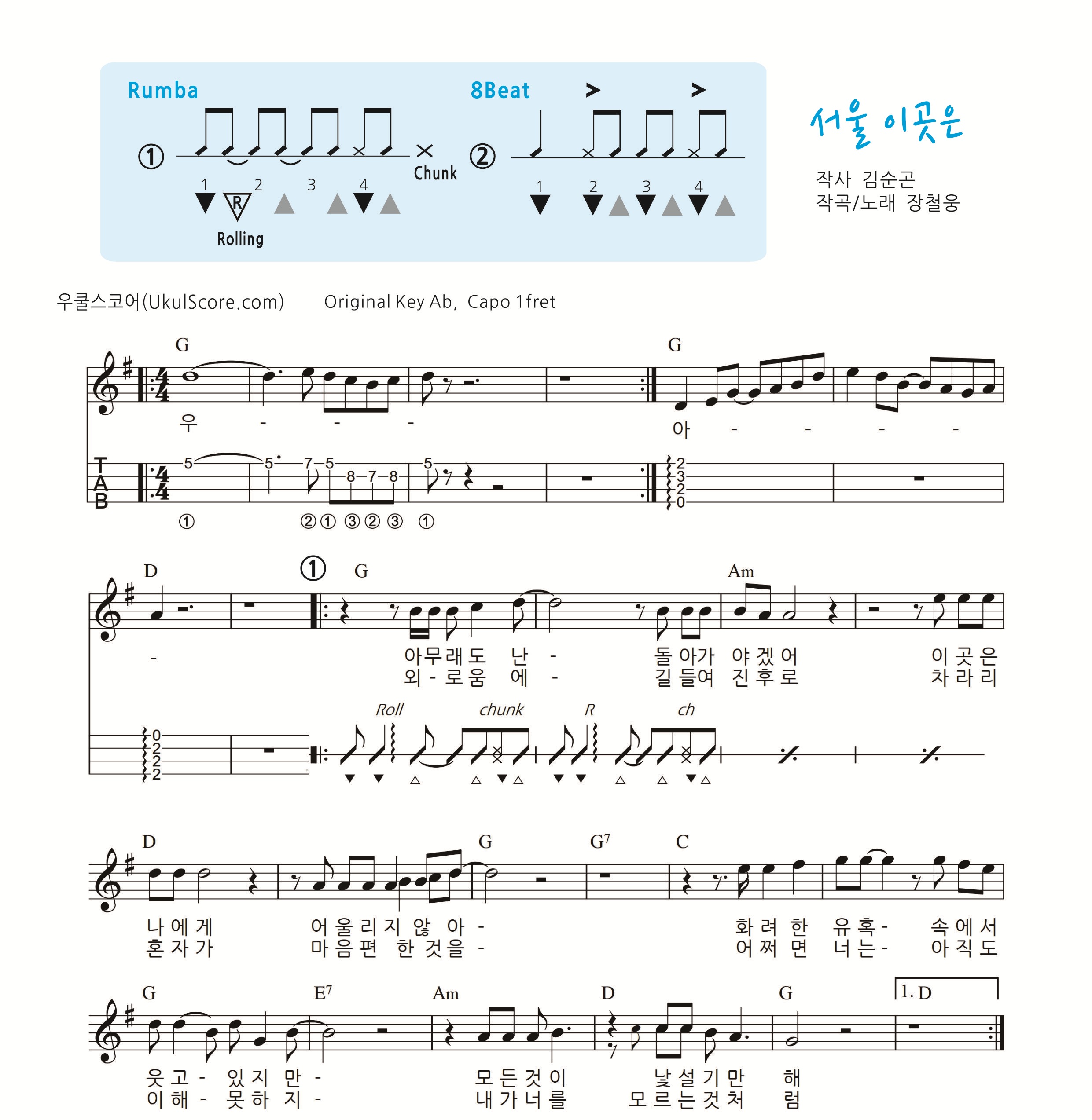 멜로디 악보를 보시려면 여기를 클릭하세요 서울 이곳은 (가요교재 964) 멜로디 > 악보 | 우쿨스코어
