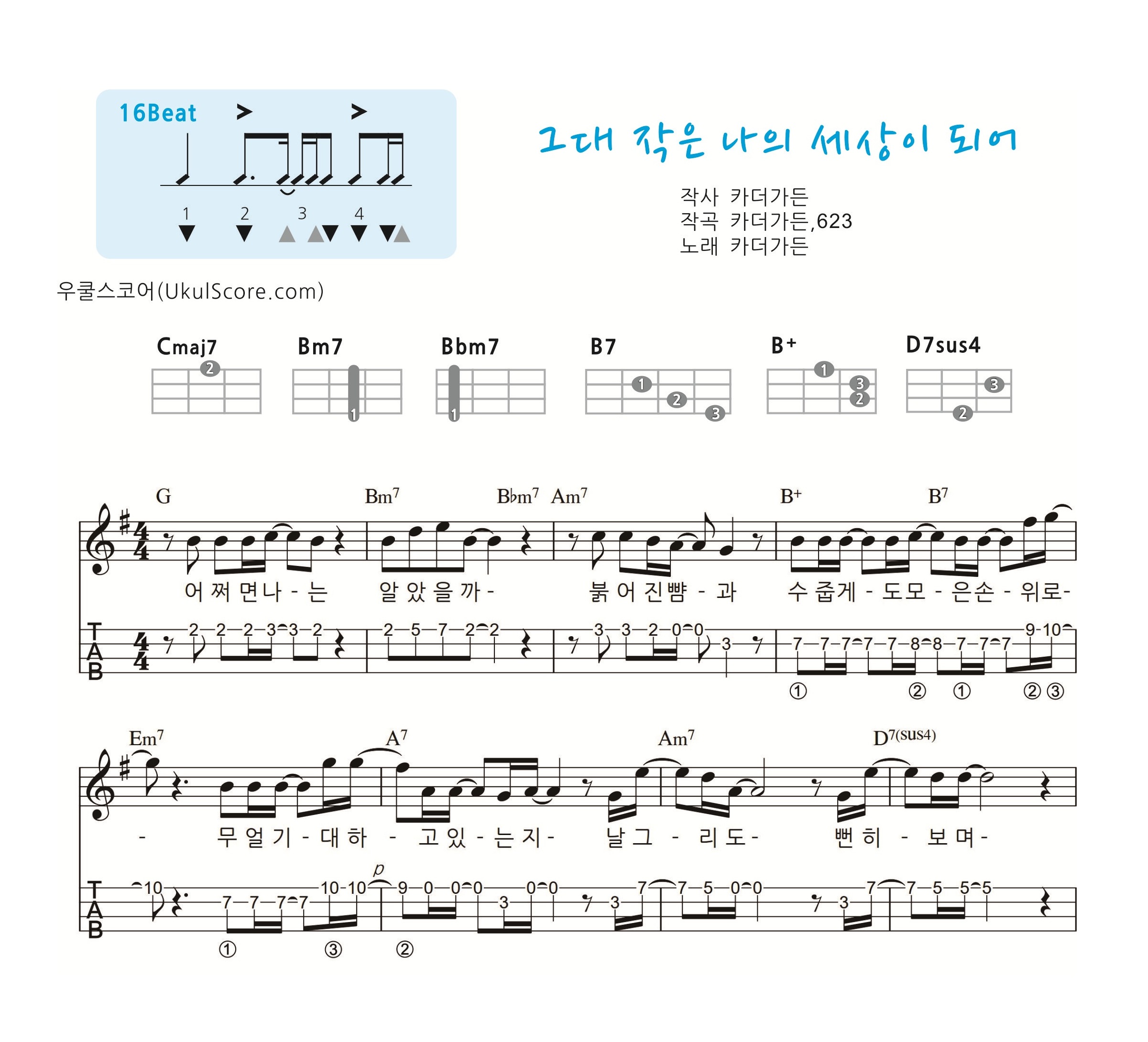 반주악보를 보시려면 여기를 클릭하세요  그대 작은 나의 세상이 되어 (가요교재 968) 반주 > 악보 | 우쿨스코어