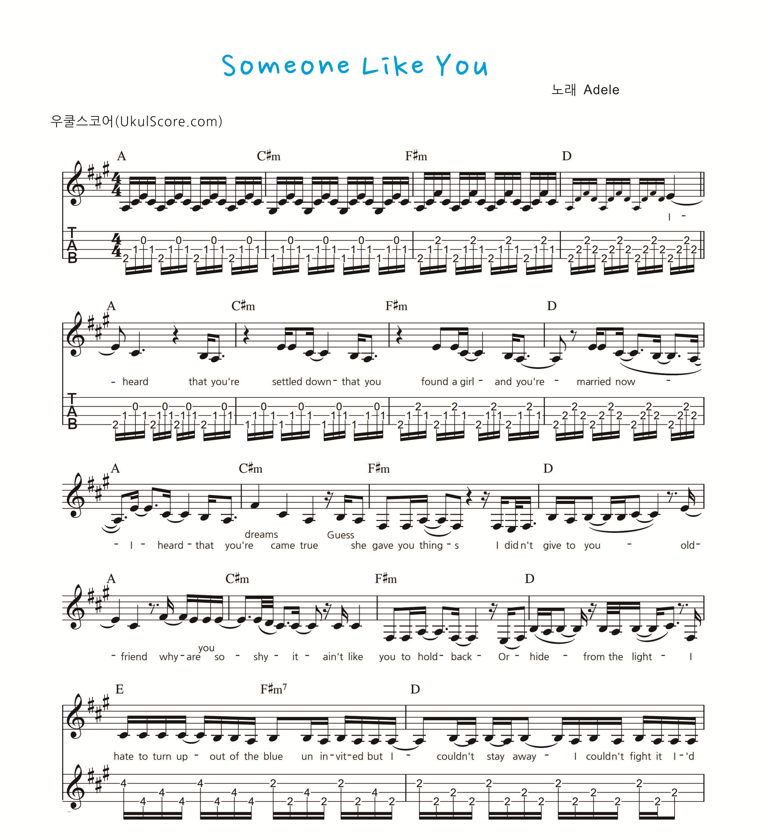 Adele 핑거스타일 악보